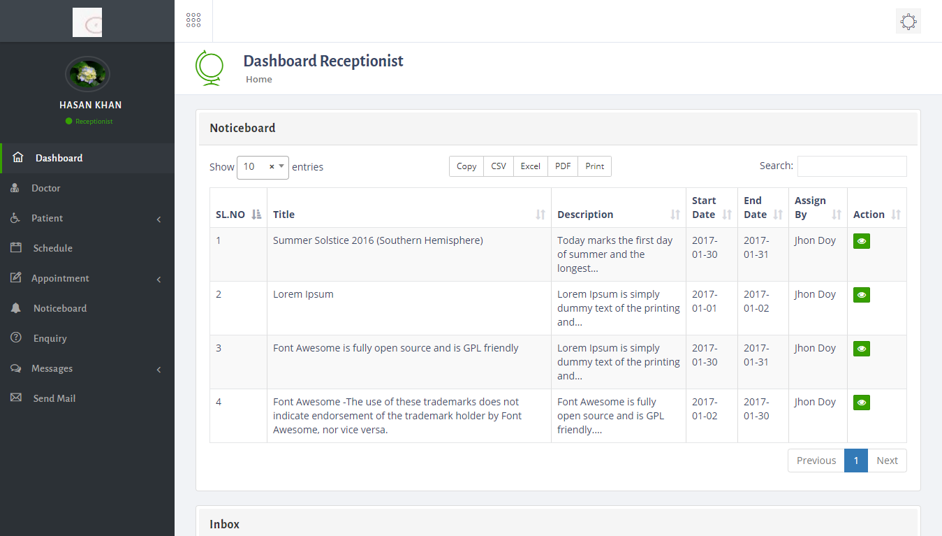 f. Receptionist list