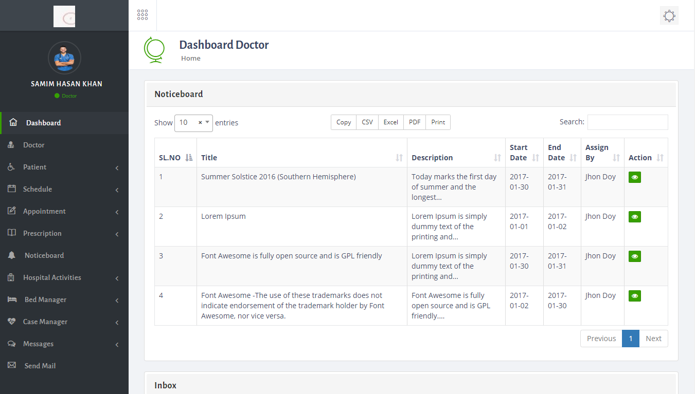 b. Doctor list