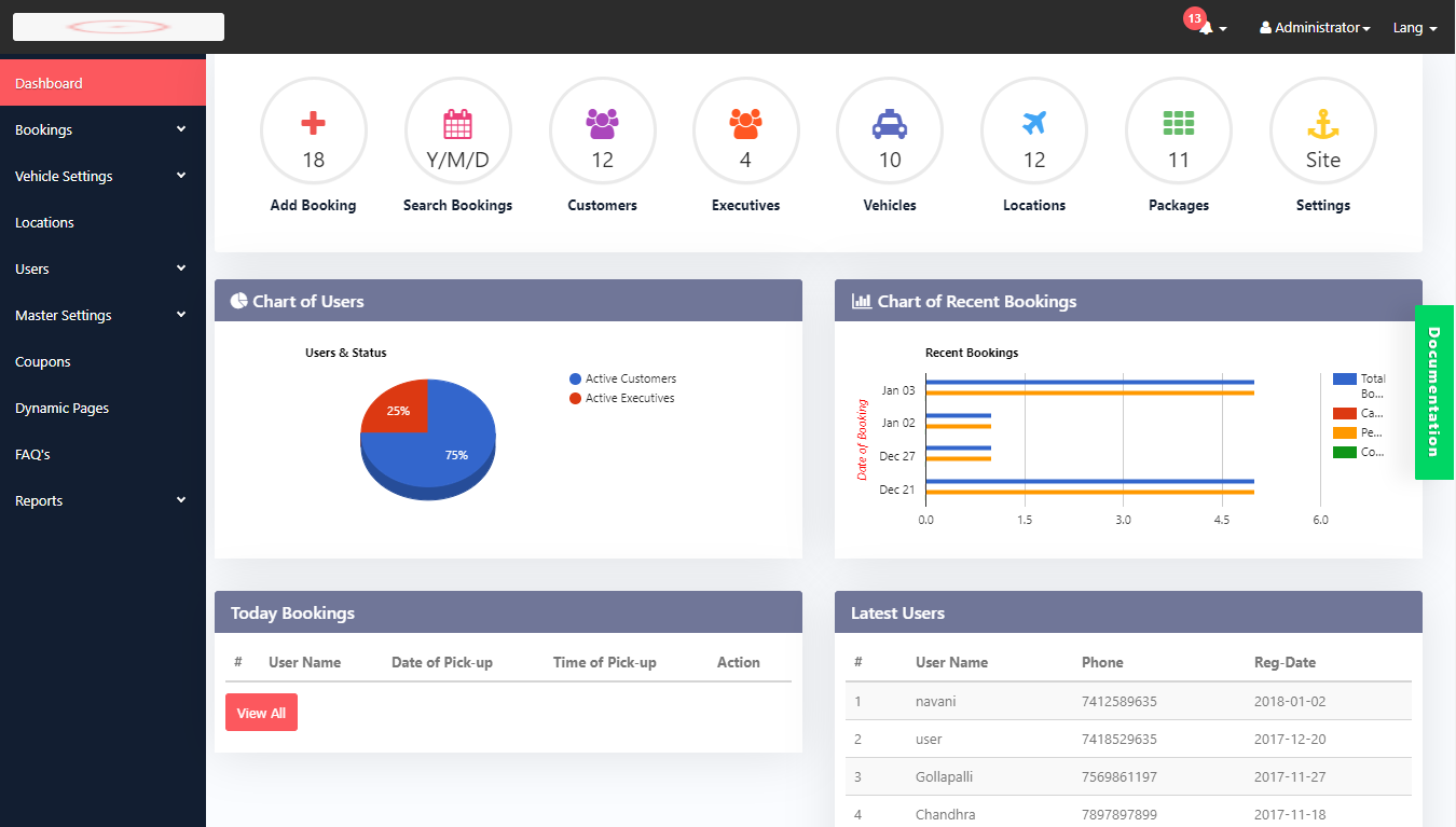 9.    And also you fine the chat of User booking,Today booking,Latest user.